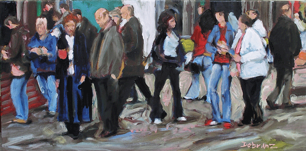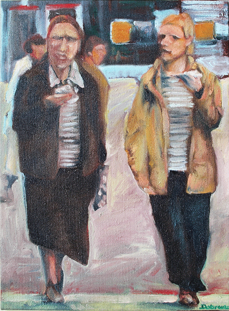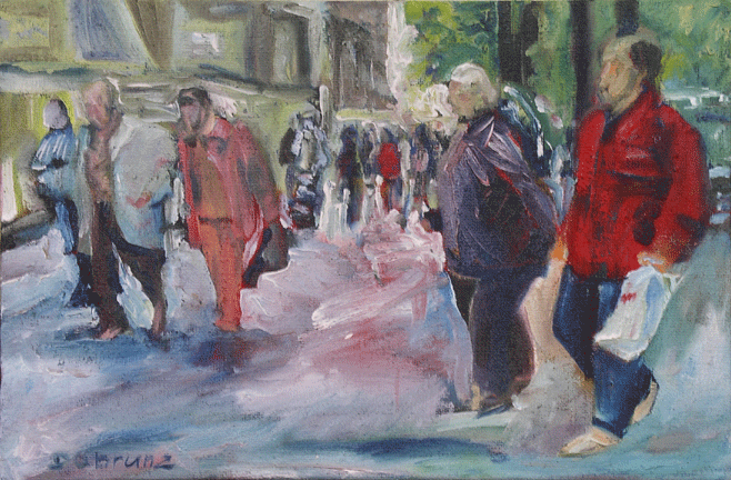 Solche Ecken sind üblicherweise mit Ampeln ausgestattet welche regulieren, dass die Menschen hier bei rotem Licht zu warten haben. Es können sehr viele Menschen sein, viele Individuen, die eine Masse bilden. Bei grünem Licht dürfen diese Menschen dann gehen. Die Rhythmik der Bewegung ist hier fremdbestimmt, das Warten erzwungen.