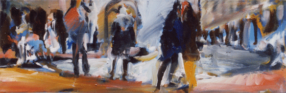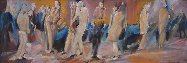 Solche Ecken sind üblicherweise mit Ampeln ausgestattet welche regulieren, dass die Menschen hier bei rotem Licht zu warten haben. Es können sehr viele Menschen sein, viele Individuen, die eine Masse bilden. Bei grünem Licht dürfen diese Menschen dann gehen. Die Rhythmik der Bewegung ist hier fremdbestimmt, das Warten erzwungen.