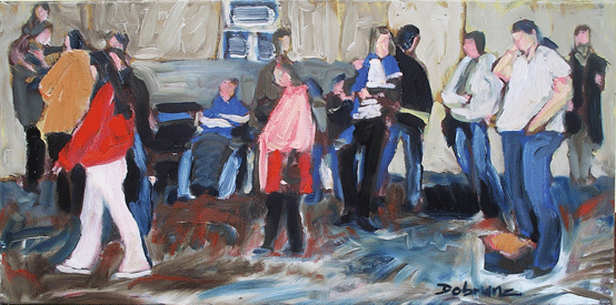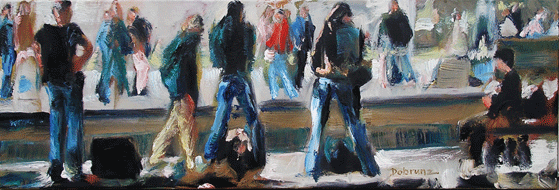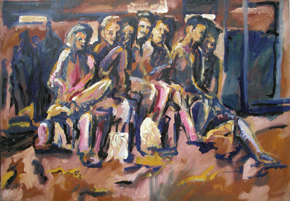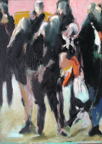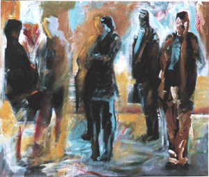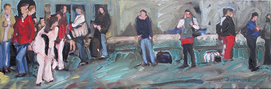 Auf dem Bahnsteig gibt es tausende von Reisenden. Wartend auf den Zug sind sie mir Modell. Sie wollen schnell weg, doch sie sind gezwungen zu verharren. Dieses Spannungsmoment zwischen Geschwindigkeit und Stillstand lässt das Individuelle hervortreten und ich kann mir das eigene Warten vertreiben.